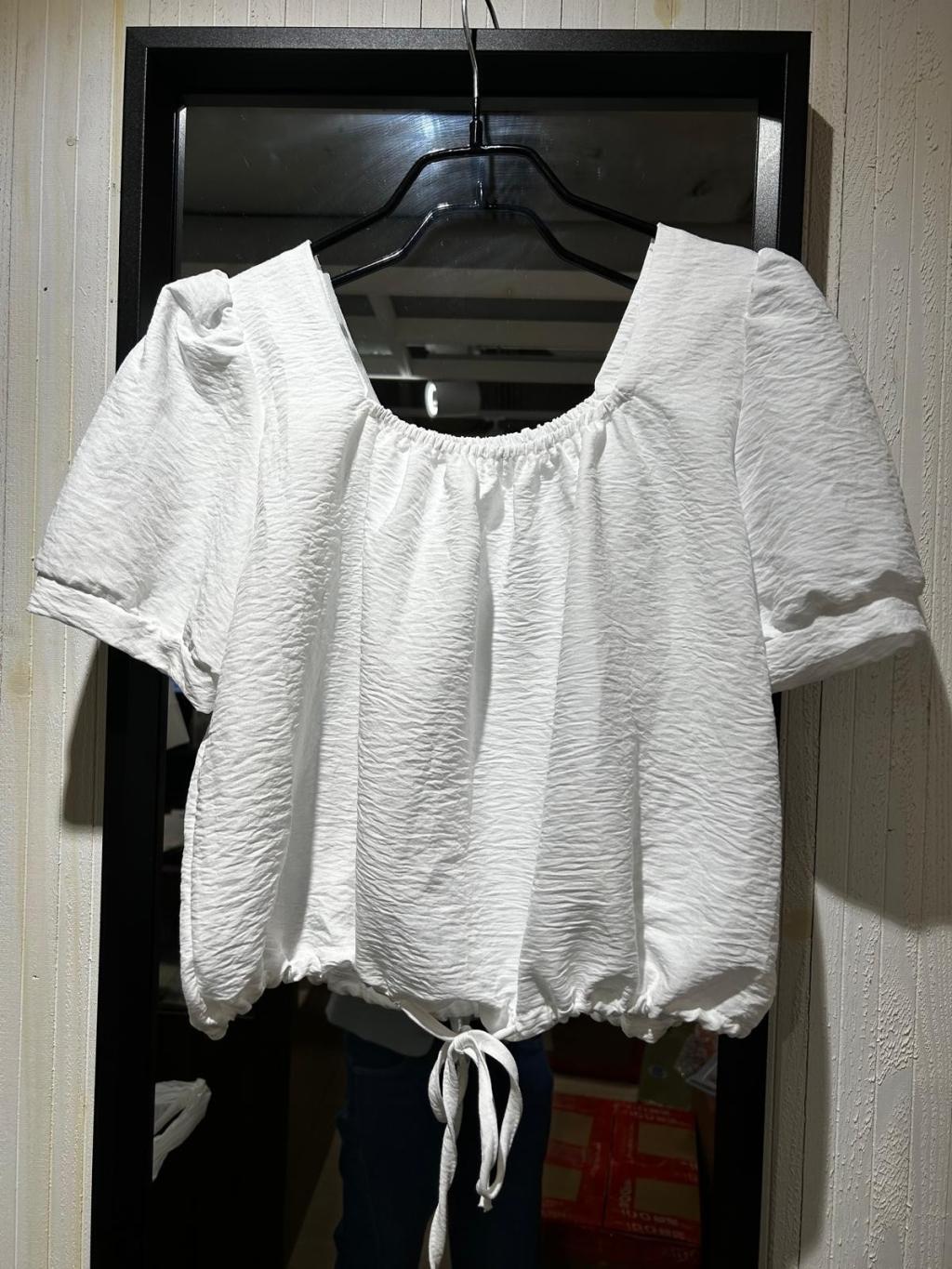 方領碎褶束帶短上衣