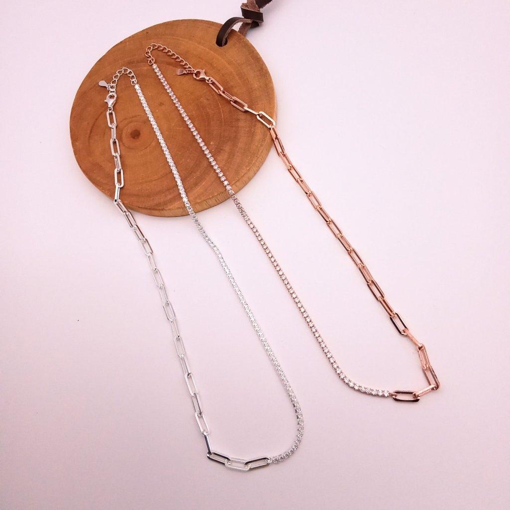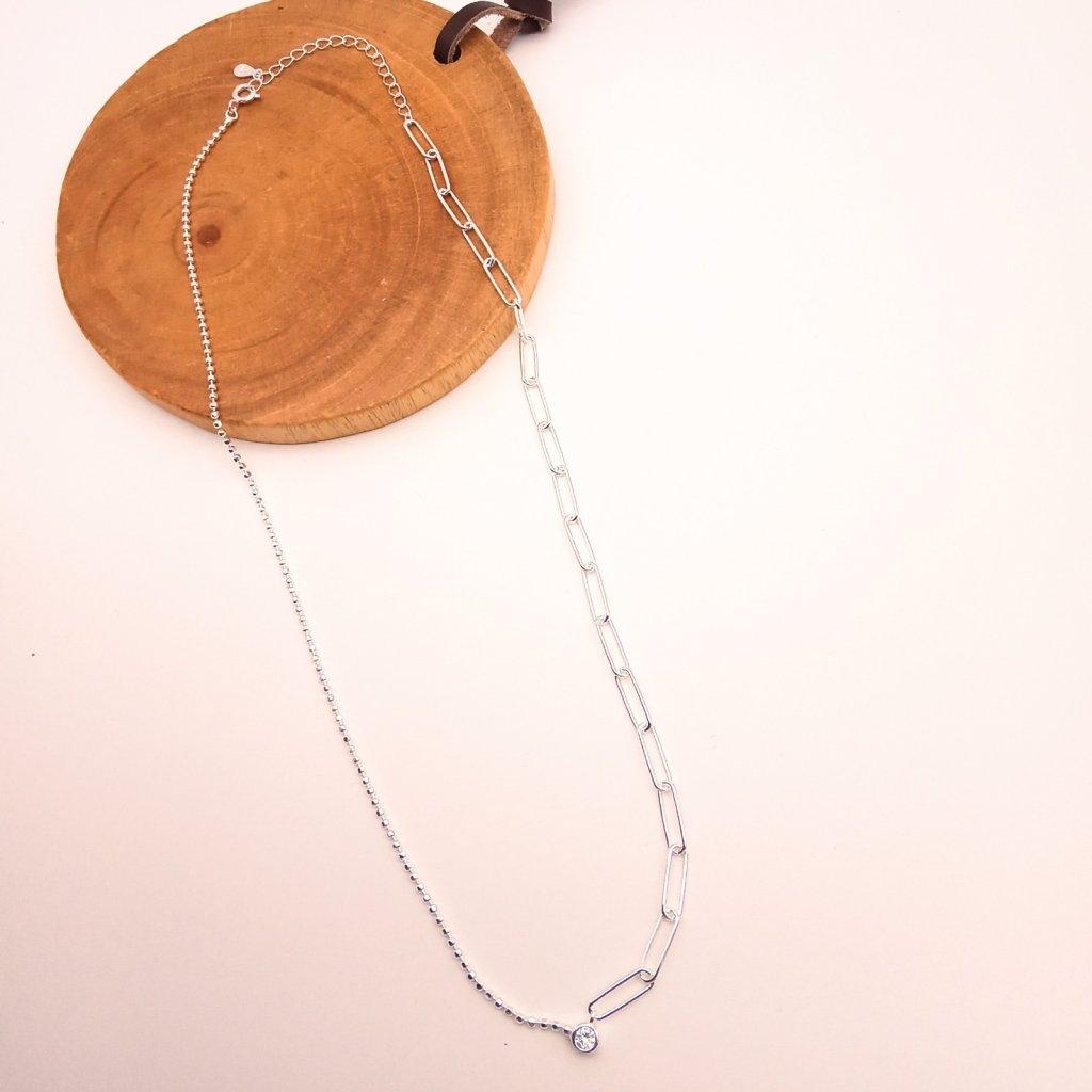 純銀925 小點拼長方扣頸鍊