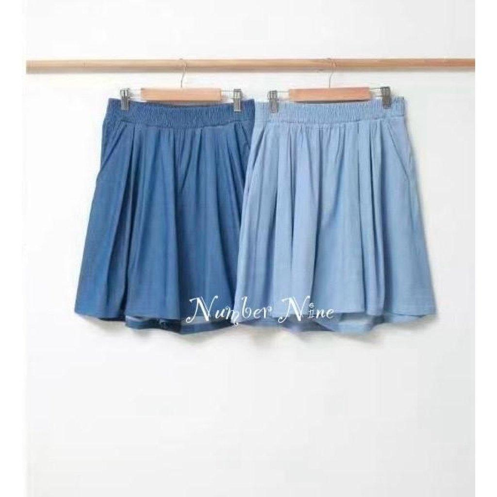 牛仔碎褶裙褲
