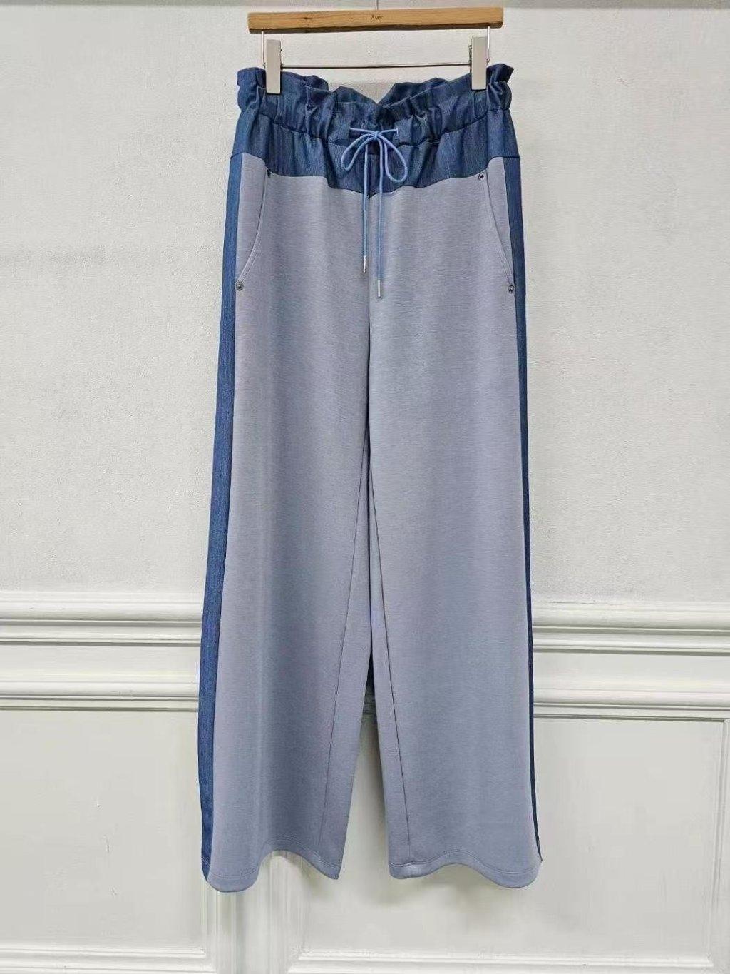 拼色束帶筒褲
