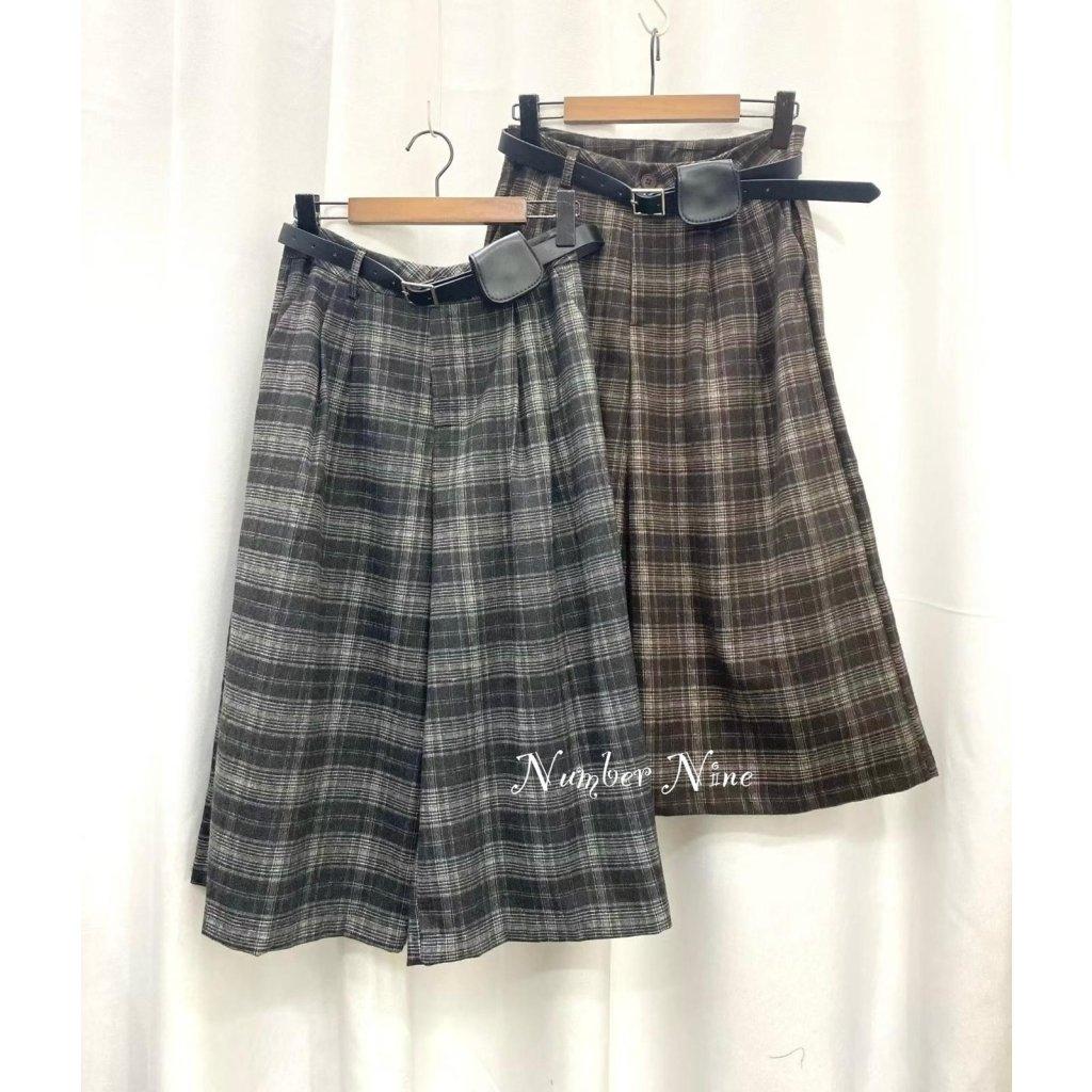 格仔布配腰帶小包7分褲