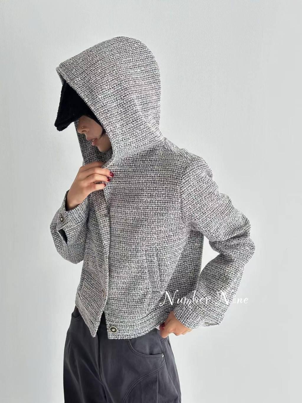 混色銀線帽短絨褸