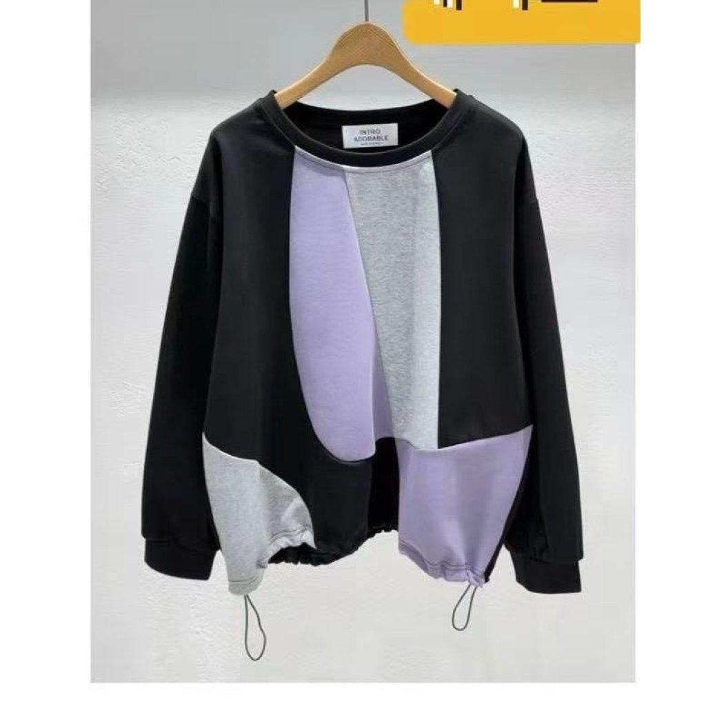 拼3色布束腰上衣